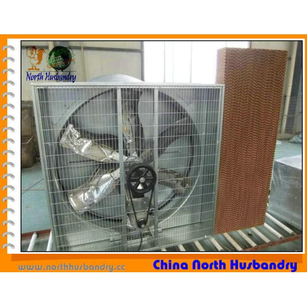 Chicken GreenHouse Fan 36'' Fan 50'' Fan (COOLING PAD) Details: 50"Exhaust Fan Size: 1380*1380*450 mm 1.The fan blade is stainless steel, big air volume, without distortion, no broken, attractive and durable. ( adopting aluminum fan blade in the past, which had some problems caused by long time working of metal in the factory cooling, for example broken and air volume decreasing) 2.Adopts automatic belt tensioners which can adjust up and tight so that the belt cant pine and drop |